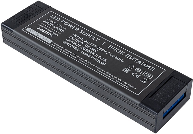 Блок питания Arte Lamp A481505N Arte Lamp соответствует параметрам:, мощность 300 Вт, напряжение 48 В , влагозащита IP20, цвет Серый.