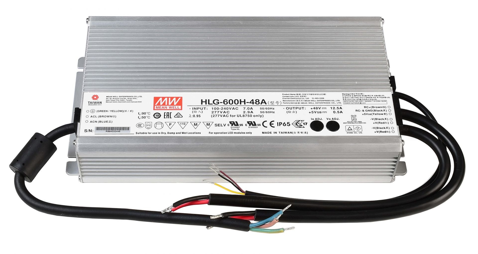Блок питания CV. HLG-600H-48A Deko-Light 872125 обладает следующими основными характеристиками:, мощность 600 W Вт, цвет Серый.