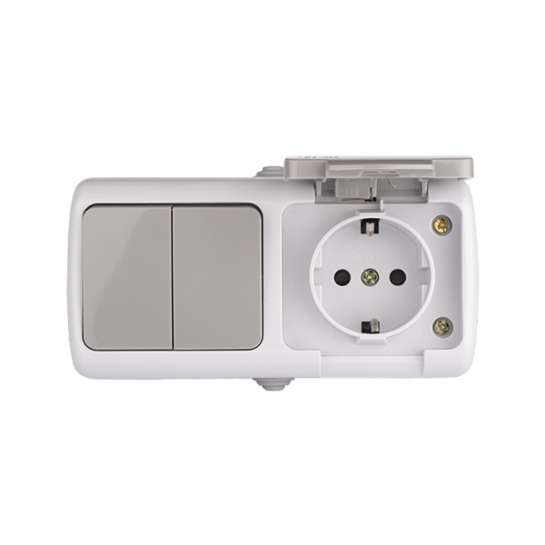 Блок розетка 1-м 16А с заземлением с крышкой + 2-кл выключатель IP54 серый EKF Мурманск EFRV16-052-30-540