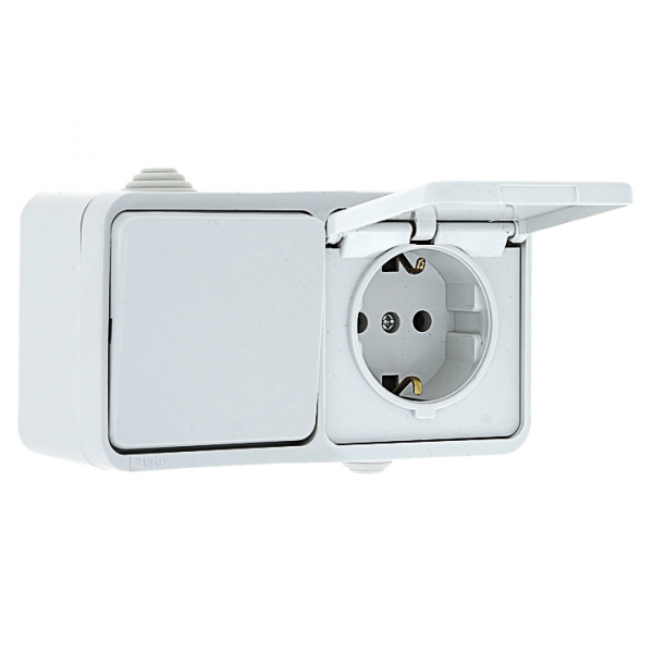Блок розетка-выключатель 1-кл. 16А с/з с крышкой IP44 белая EKF Прага EKRV16-050-10-440