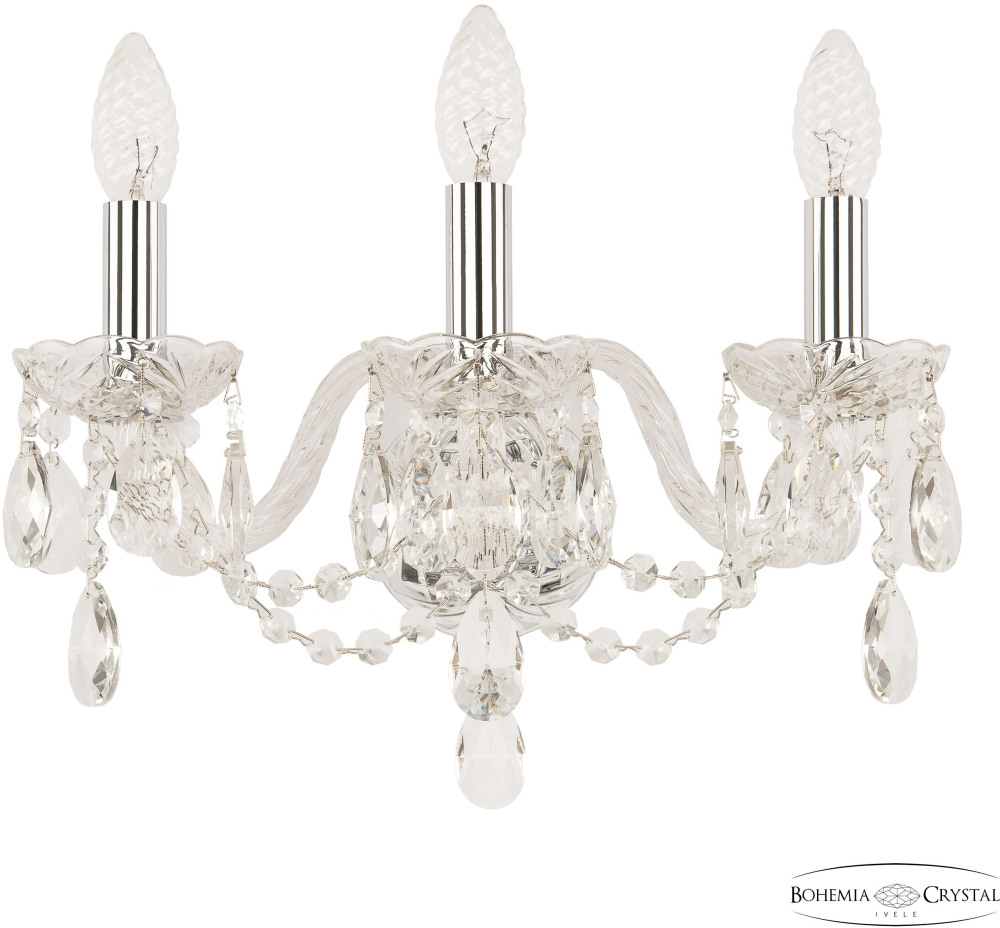 Осветительный прибор создан в стиле Классический. Применяются лампочки с цоколем E14 мощностью 120 Вт, в количестве 3 шт. Основной цвет модели 116B/3/141 Ni: Прозрачный.