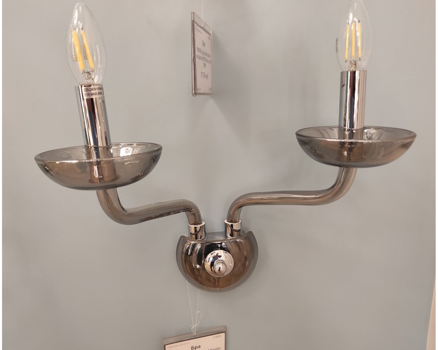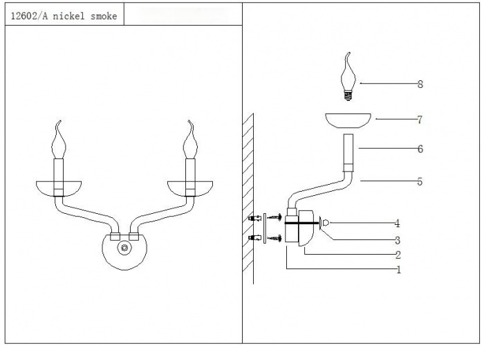 Осветительный прибор выполнен в стиле Классический. Используются лампы с цоколем E14 мощностью 120 Вт, количеством 2 шт. Цвет модели 12602/A smoke: Серый.