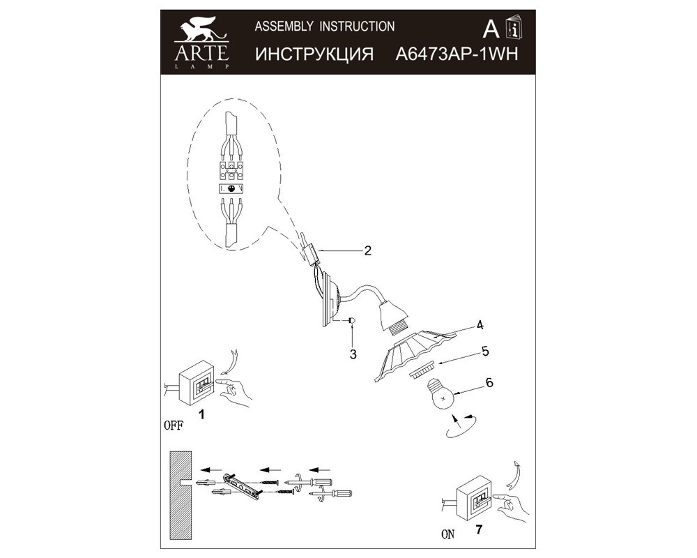 Бра Anna A6473AP-1WH Arte Lamp