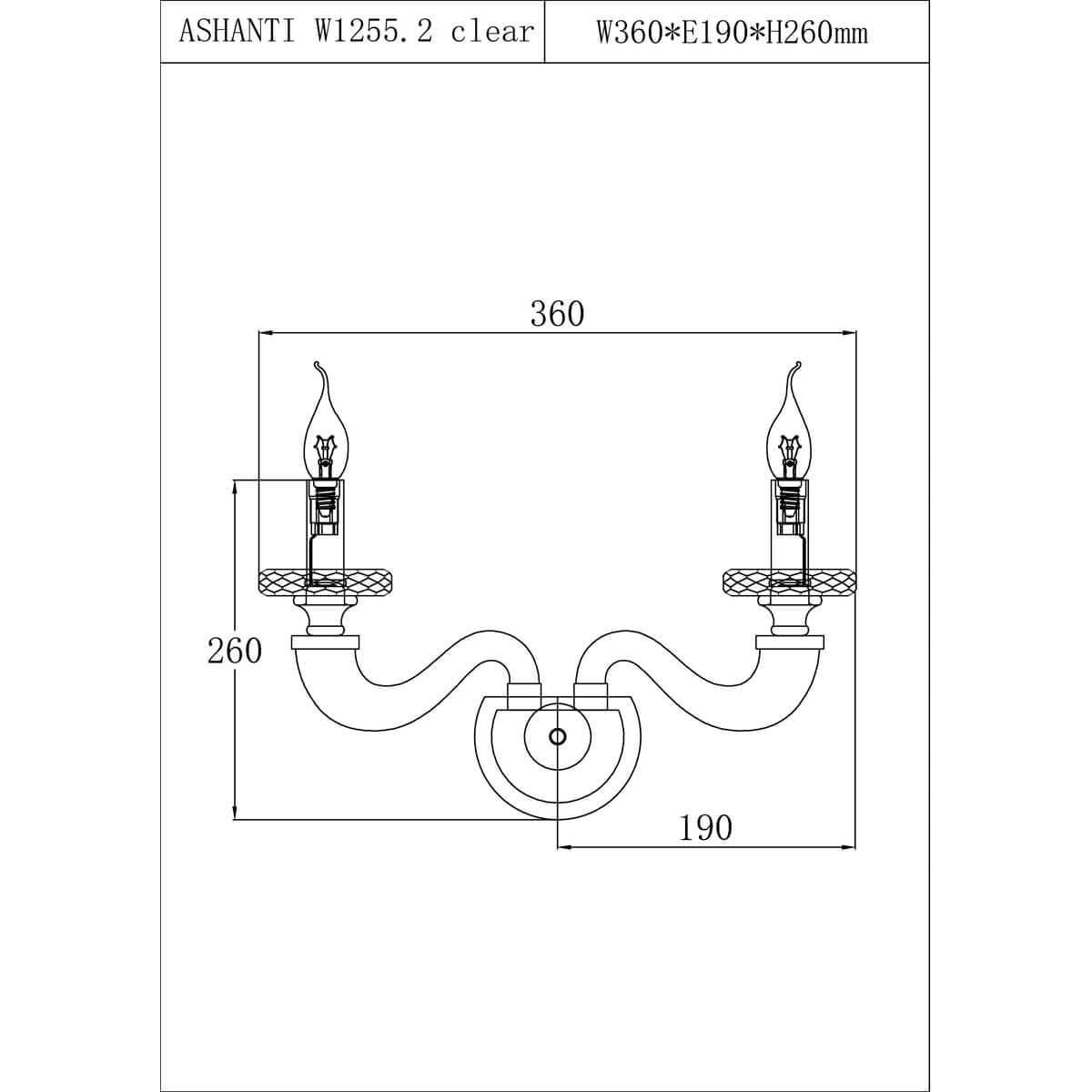 Осветительный прибор сделан в стиле Классический. Используются лампы с цоколем E14 мощностью 80 Вт, в количестве 2 ед. Цвет модели Ashanti W1255.2 clear: Прозрачный.
