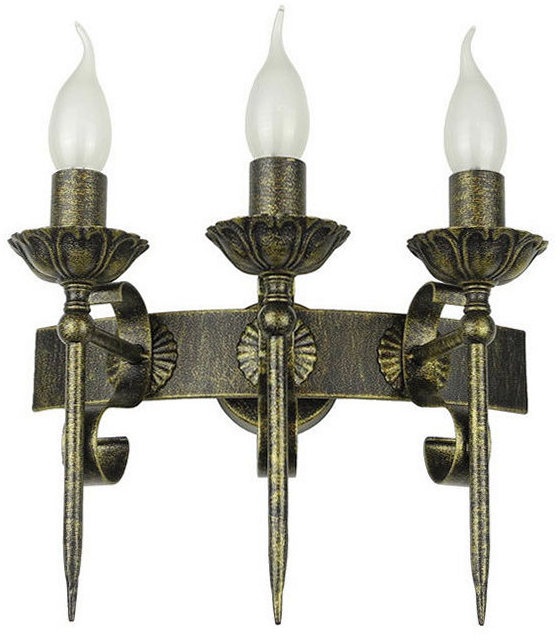 Осветительный прибор выполнен в стиле Замковый. Задействуются лампочки цоколя E14 мощностью 120 Вт, количеством 3 шт. Цвет модели Бастион-3: Бронза.