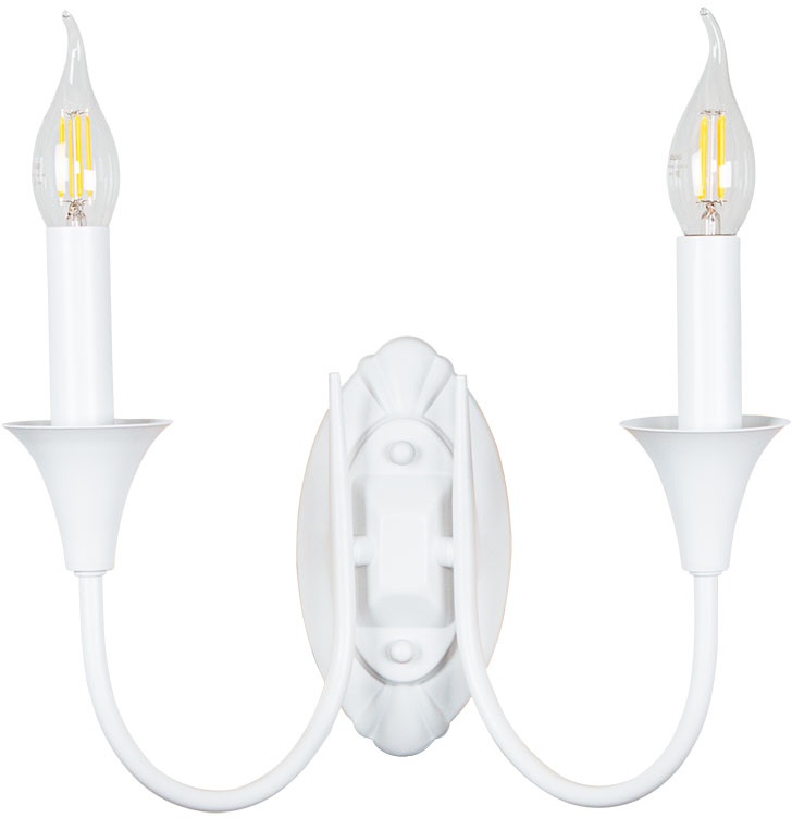 Осветительный прибор выполнен в стиле Классический. Задействуются лампочки цоколя E14 мощностью 80 Вт, количеством 2 шт. Цвет модели A4094AP-2WH: Белый.