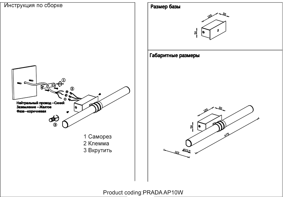 Применяются лампочки с цоколем LED мощностью 10 Вт. Основной цвет модели PRADA AP10W BRASS: Золотой.