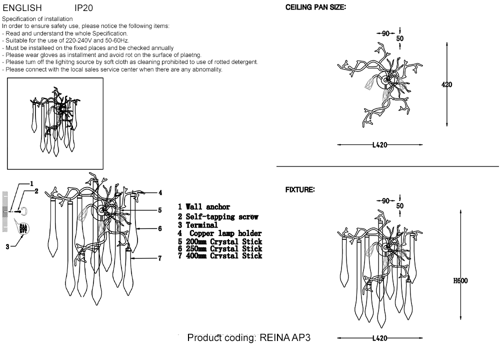 Осветительный прибор создан в стиле Арт-Деко. Используются лампы с цоколем E14 мощностью 60 Вт, в количестве 3 ед. Цвет модели REINA AP3 SILVER PATINA: Прозрачный.
