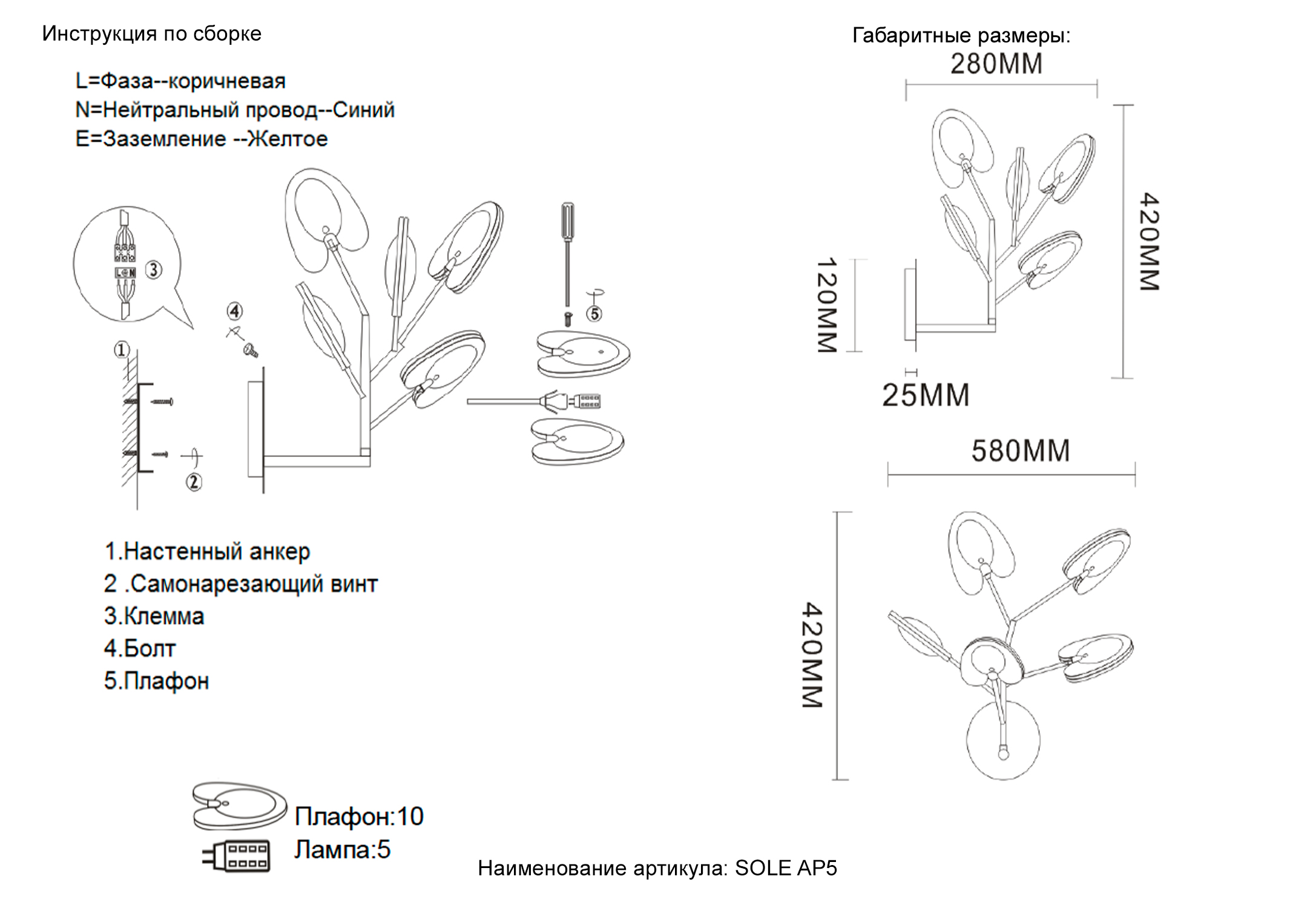 Осветительный прибор создан в стиле Современный. Подходят лампы цоколя G4 мощностью 3 Вт, количеством 5 ед. Основной цвет модели SOLE AP5 GOLD: Белый,Прозрачный.