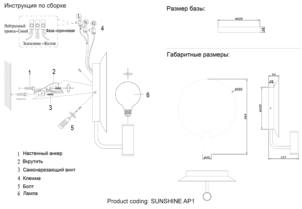 Осветительный прибор сделан в стиле Современный. Используются лампы цоколя E27 мощностью 40 Вт, количеством 1 ед. Основной цвет модели SUNSHINE AP1 GOLD: Золотой.