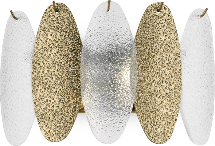 Осветительный прибор сделан в стиле Модерн. Подходят лампы цоколя E14 мощностью 80 Вт, количеством 2 ед. Основной цвет модели FR5189WL-02BS: Золотой.