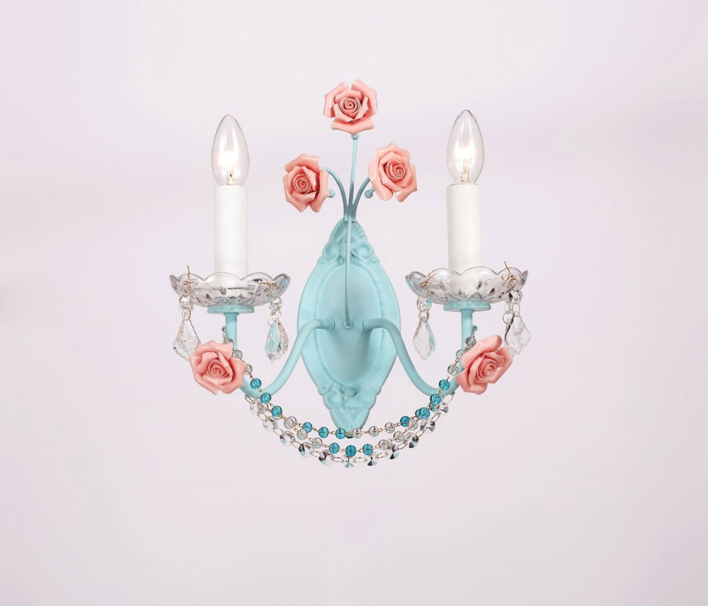 Осветительный прибор разработан в стиле Прованс. Подходят лампы с цоколем E14 мощностью 120 Вт, в количестве 2 ед. Цвет модели Fiori di rose W186.2: Голубой,Розовый.