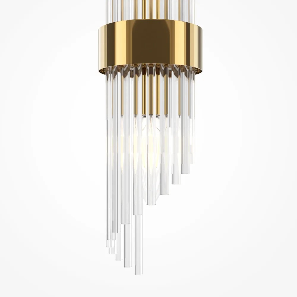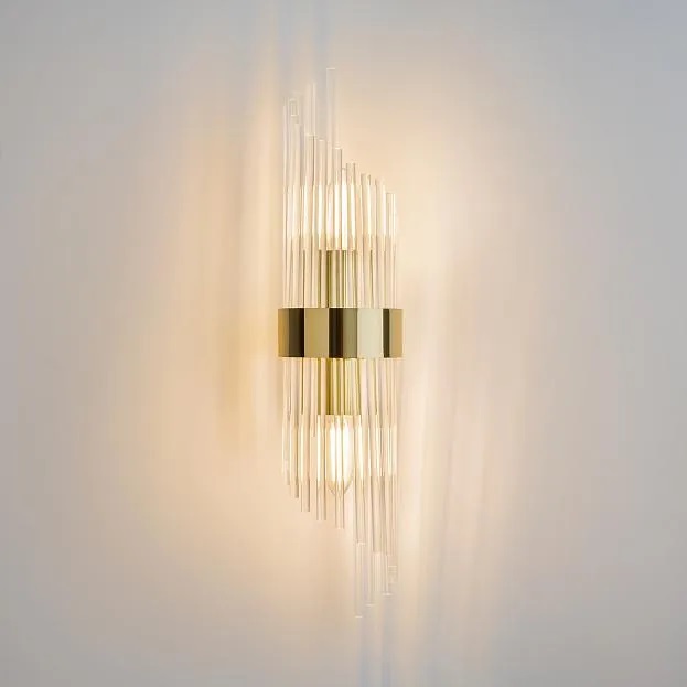 Осветительный прибор выполнен в стиле Модерн. Применяются лампы с цоколем E14 мощностью 120 Вт, количеством 2 шт. Цвет модели MOD174WL-02G: Прозрачный.