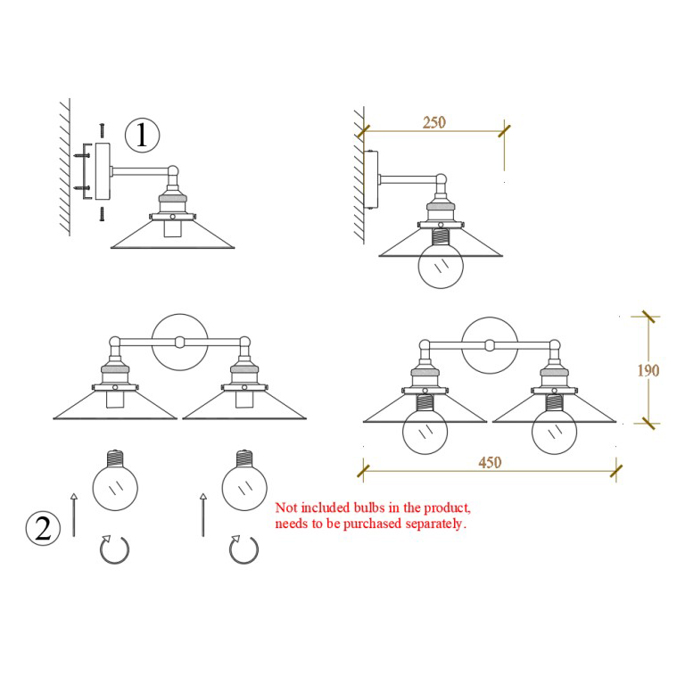 Осветительный прибор разработан в стиле Индустриальный. Подходят лампочки с цоколем E27 мощностью 120 Вт, в количестве 2 шт. Основной цвет модели 75111-22: Чёрный.