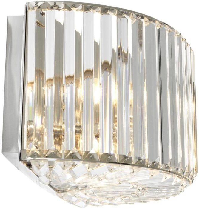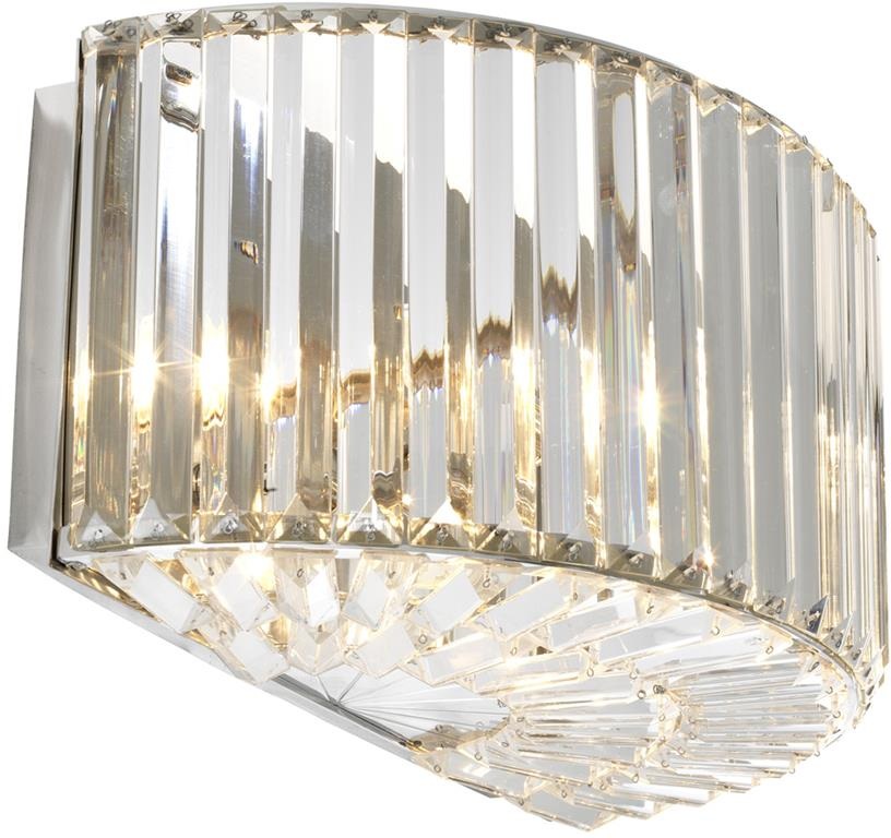 Осветительный прибор создан в стиле Арт-Деко. Применяются лампы цоколя E14 мощностью 80 Вт, в количестве 2 шт. Основной цвет модели 111001: Прозрачный.