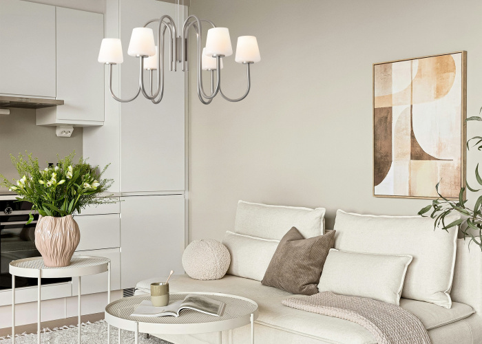 Осветительный прибор разработан в стиле Модерн. Задействуются лампочки цоколя E14 мощностью 40 Вт, количеством 1 шт.