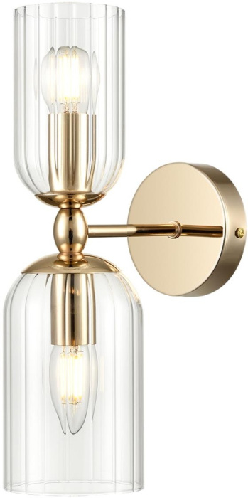 Осветительный прибор разработан в стиле Модерн. Применяются лампы цоколя E14 мощностью 80 Вт, количеством 2 ед. Основной цвет модели 6586/2W: Прозрачный.