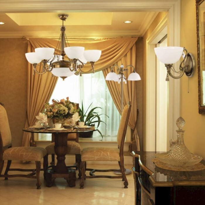 Осветительный прибор выполнен в стиле Ампир. Используются лампочки цоколя E27 мощностью 60 Вт, количеством 1 шт. Цвет модели ROM-K-1(P): Бронза.