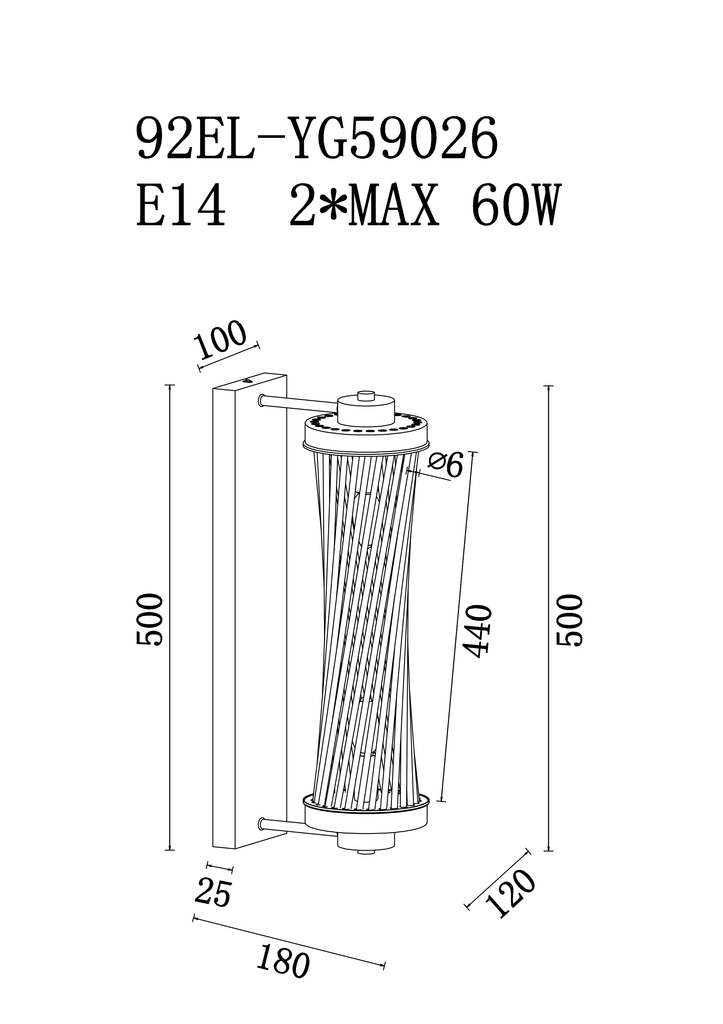 Осветительный прибор разработан в стиле Модерн. Задействуются лампочки цоколя E14 мощностью 60 Вт, в количестве 2 ед. Цвет модели 92EL-YG59026: Золотой.