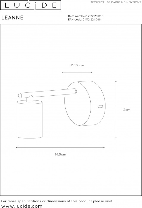 Бра 21221/01/30 изготавливается брендом Lucide и принадлежит коллекции Leanne. Габаритные параметры: длина 145 мм, высота 120 мм, ширина 100 мм. Бра Lucide 21221/01/30 произведены из высококачественных и прочных материалов: металл, плафон - Без плафона.