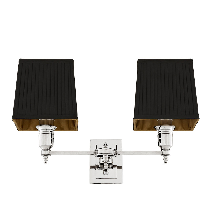 Осветительный прибор сделан в стиле Арт-Деко. Подходят лампы с цоколем E14 мощностью 80 Вт, в количестве 2 ед. Цвет модели 108936: Чёрный.