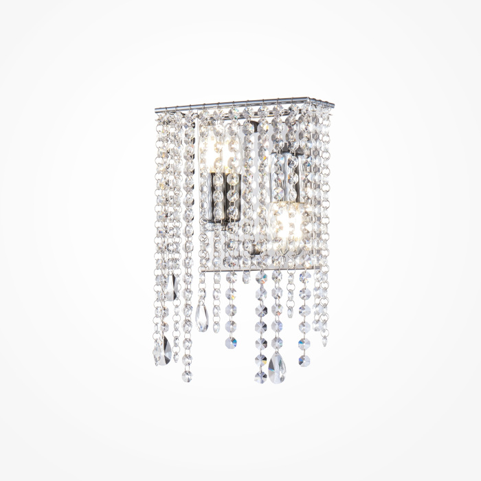 Осветительный прибор разработан в стиле Классический. Задействуются лампы с цоколем E14 мощностью 120 Вт, количеством 2 шт. Цвет модели DIA002WL-02CH: Прозрачный.