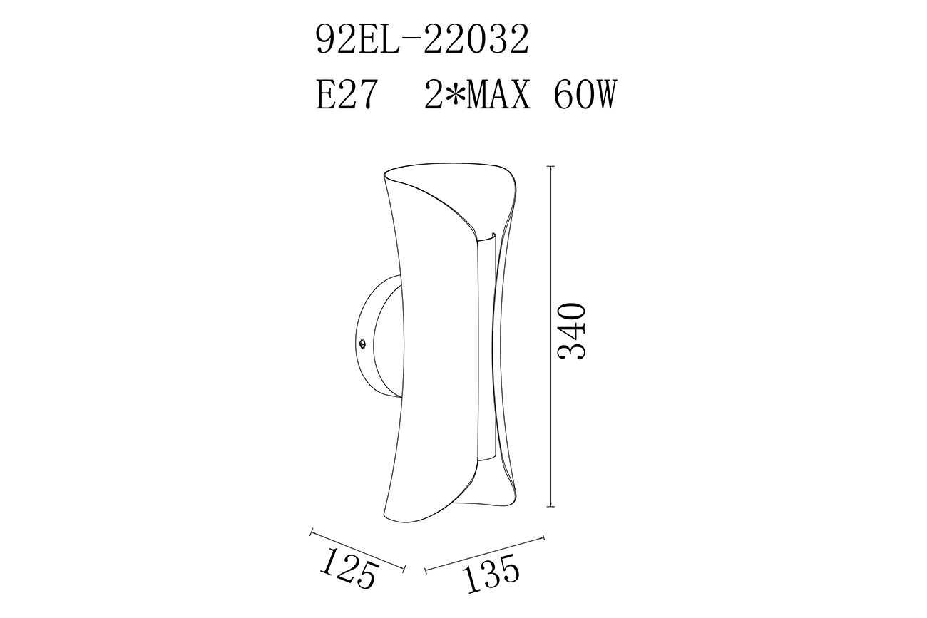 Осветительный прибор выполнен в стиле Современный. Подходят лампы цоколя E27 мощностью 60 Вт, в количестве 2 шт. Основной цвет модели 92EL-22032: Чёрный.