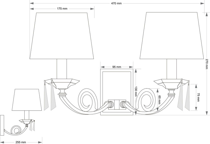 Осветительный прибор создан в стиле Классический. Используются лампы с цоколем E14 мощностью 80 Вт, количеством 2 шт.