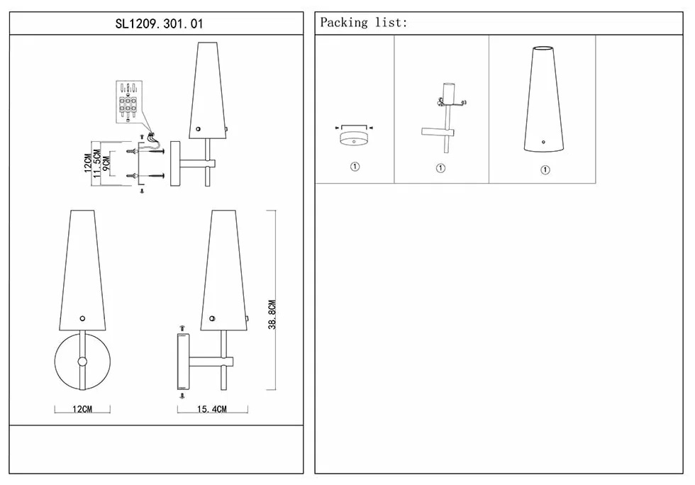 Осветительный прибор сделан в стиле Контемпорари. Подходят лампы цоколя E14 мощностью 40 Вт, количеством 1 ед. Основной цвет модели SL1209.301.01: Бронза.