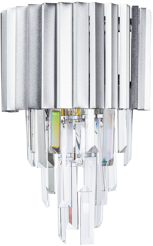 Осветительный прибор разработан в стиле Модерн. Используются лампы с цоколем E14 мощностью 120 Вт, в количестве 2 ед. Цвет модели A1004AP-2SI: Прозрачный,Серебряный.