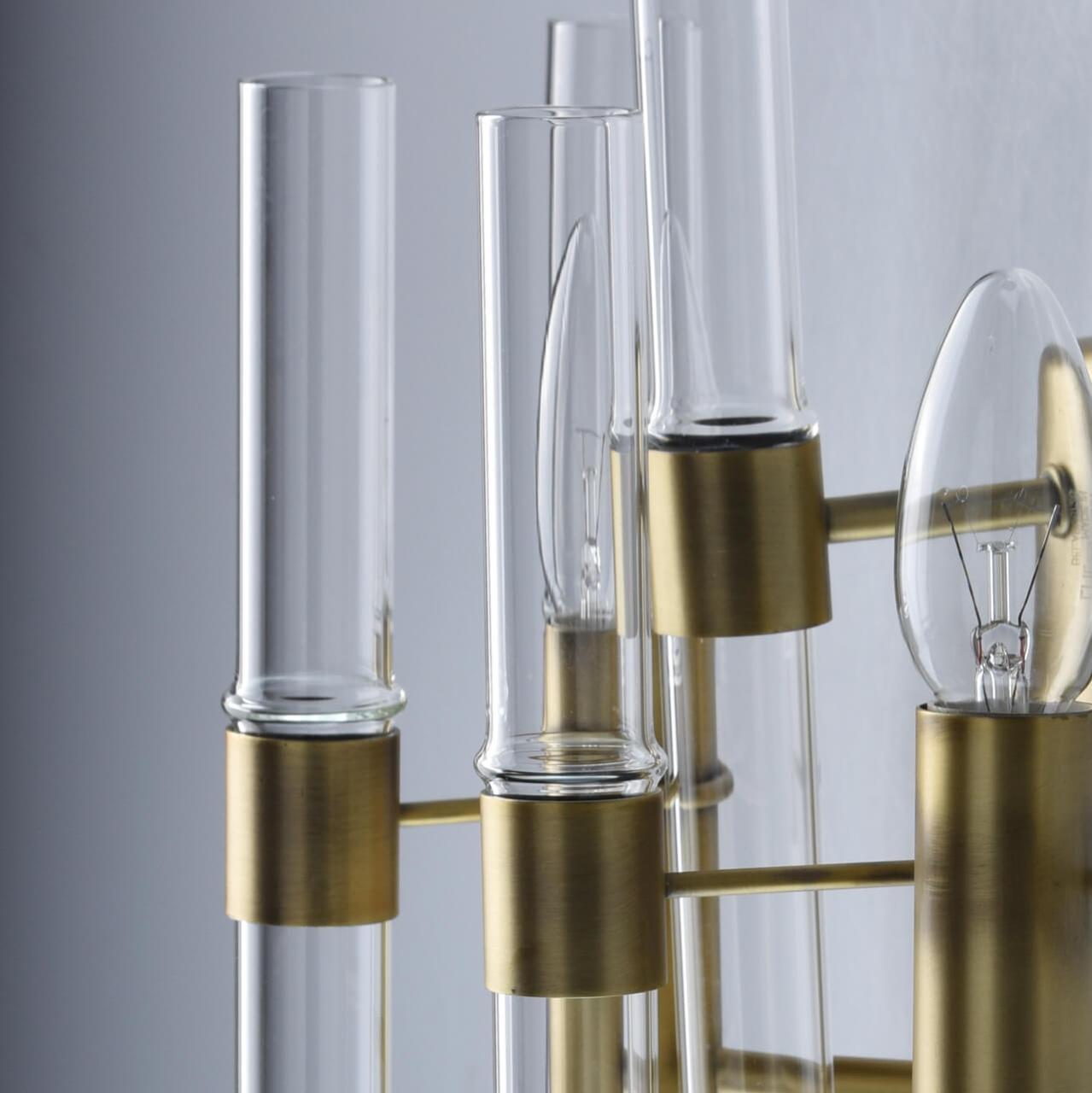 Осветительный прибор выполнен в стиле Арт-Деко. Подходят лампы цоколя E14 мощностью 80 Вт, в количестве 2 шт. Основной цвет модели 285021002: Золотой.