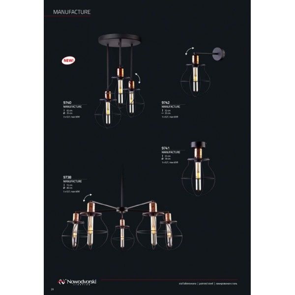Осветительный прибор сделан в стиле Лофт. Применяются лампочки с цоколем E27 мощностью 60 Вт, количеством 1 ед. Основной цвет модели 9742: Чёрный.