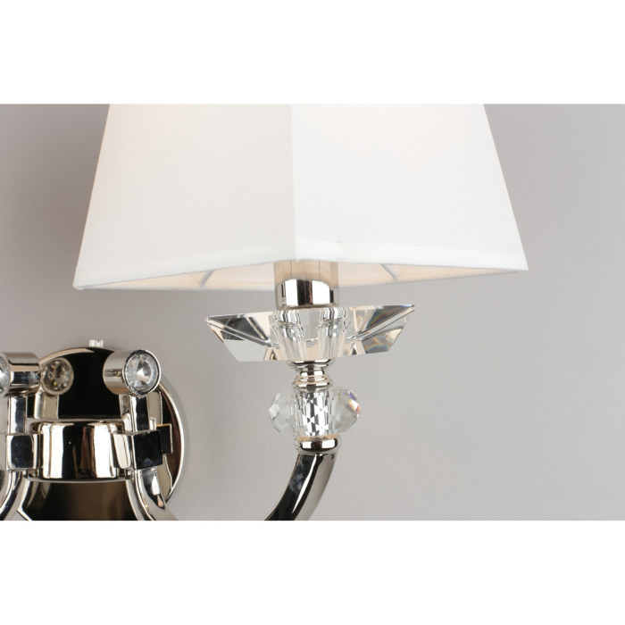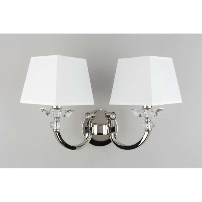 Осветительный прибор сделан в стиле Арт-Деко. Задействуются лампочки цоколя E14 мощностью 80 Вт, в количестве 2 ед. Цвет модели OML-86701-02: Белый.