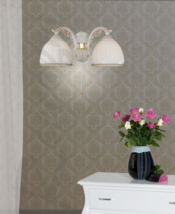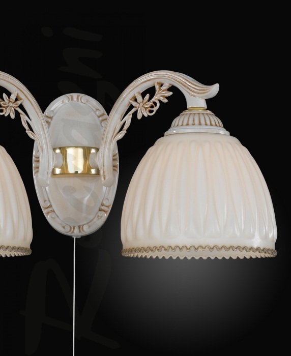 Осветительный прибор сделан в стиле Классический. Используются лампы цоколя E27 мощностью 120 Вт, количеством 2 ед. Основной цвет модели A 9671/2: Белый.