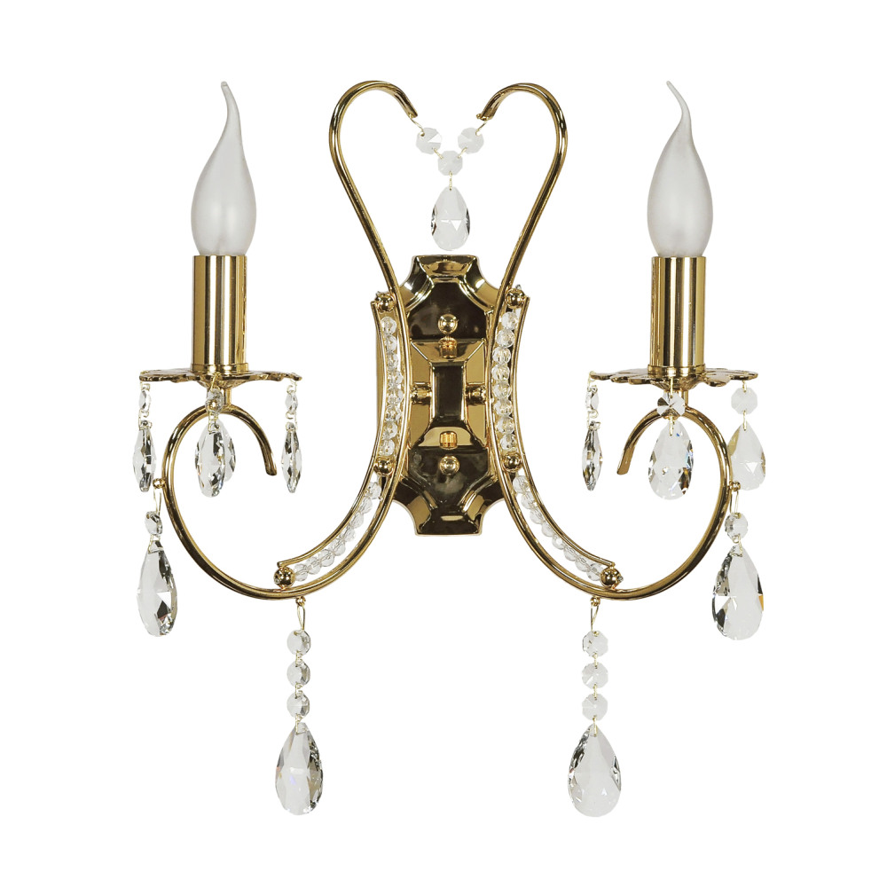 Осветительный прибор выполнен в стиле Барокко. Подходят лампы цоколя E14 мощностью 80 Вт, в количестве 2 шт. Основной цвет модели Romano E 2.1.2.601 G: Золотой.