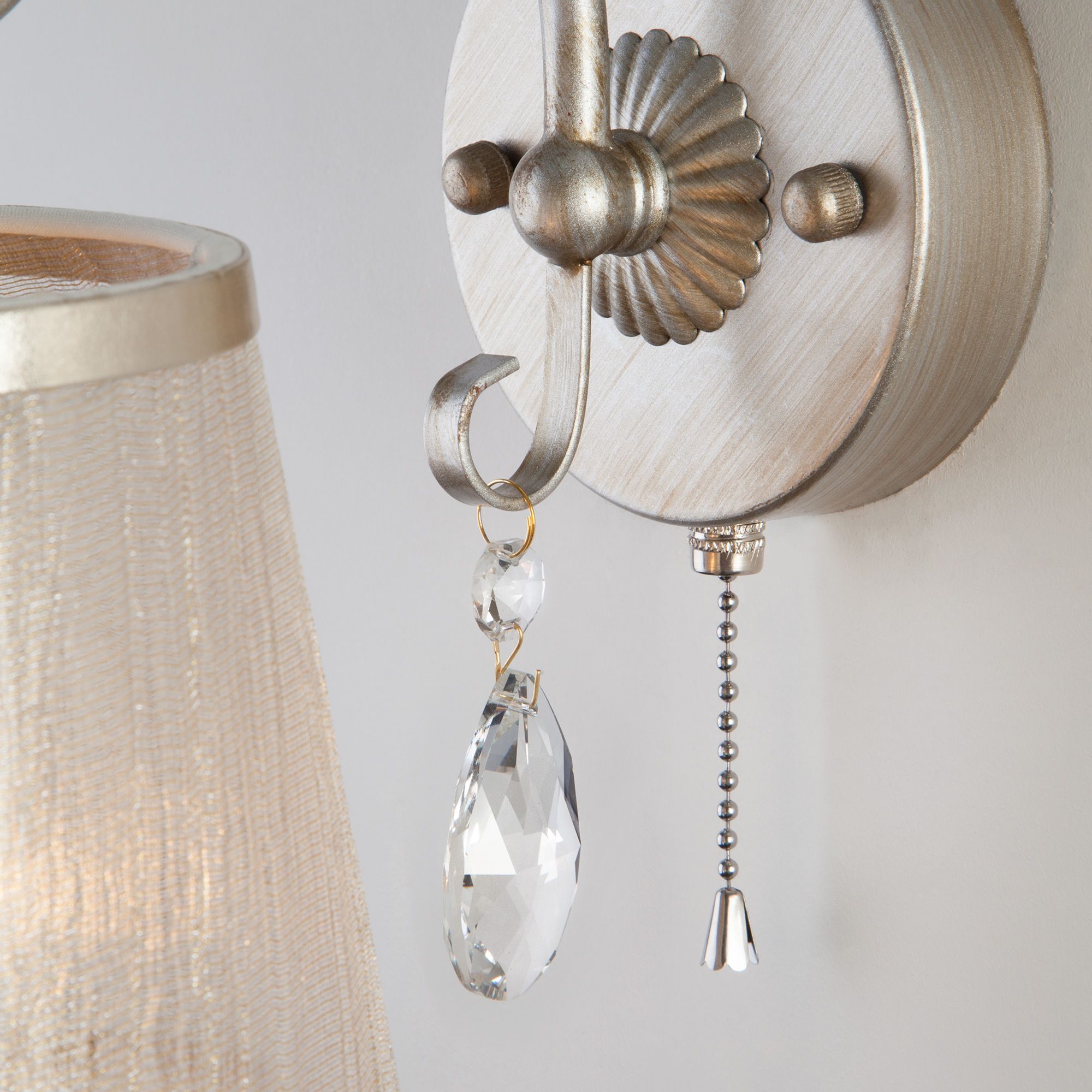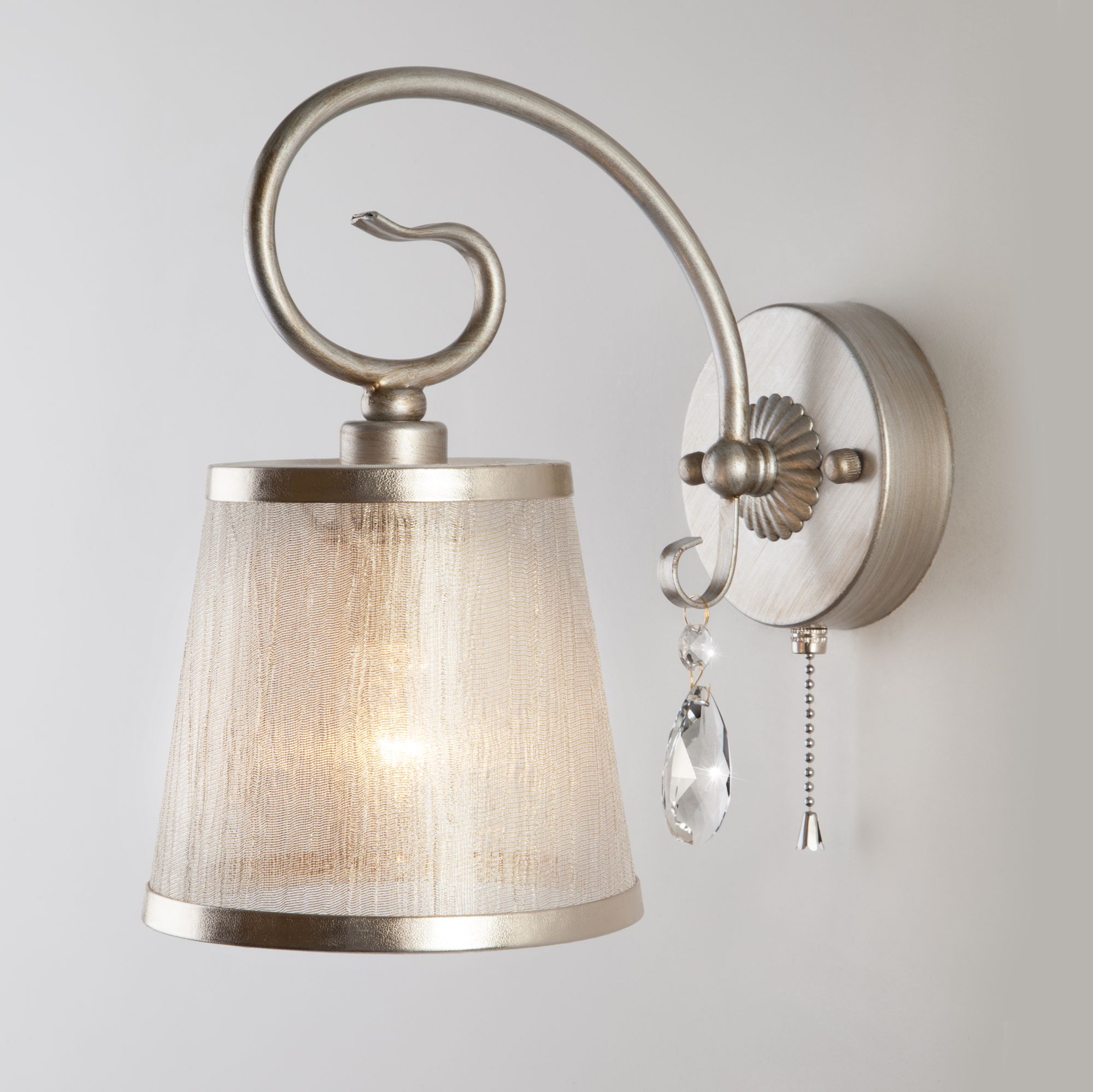 Бра с абажуром Eurosvet Liona 00000082041 60065/1 серебро на ножке, с выключателем