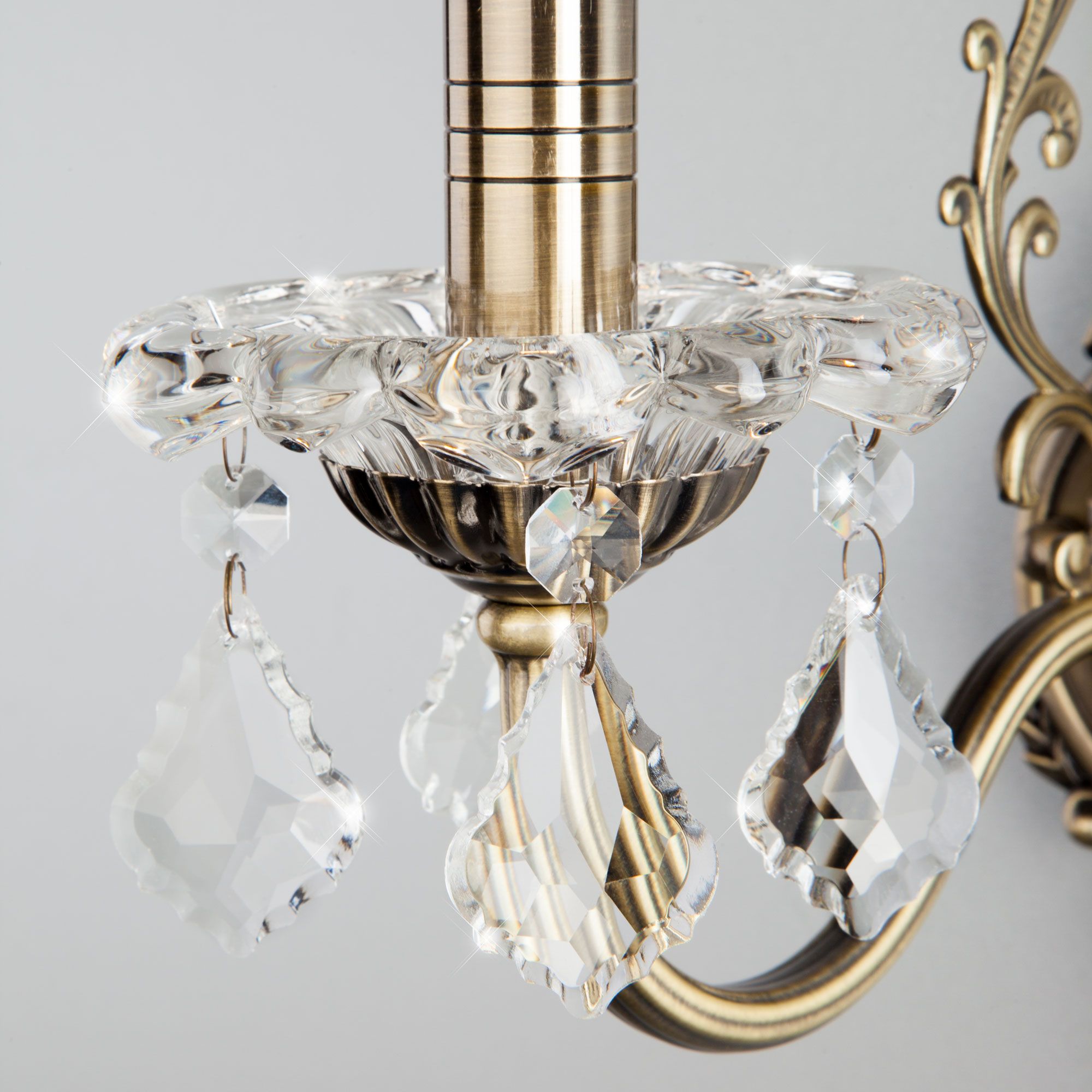 Бра с хрусталем Eurosvet Elisha 00000065241 3281/1 античная бронза/прозрачный хрусталь Strotskis бронзовое, в стиле барокко, в виде свечи, на ножке