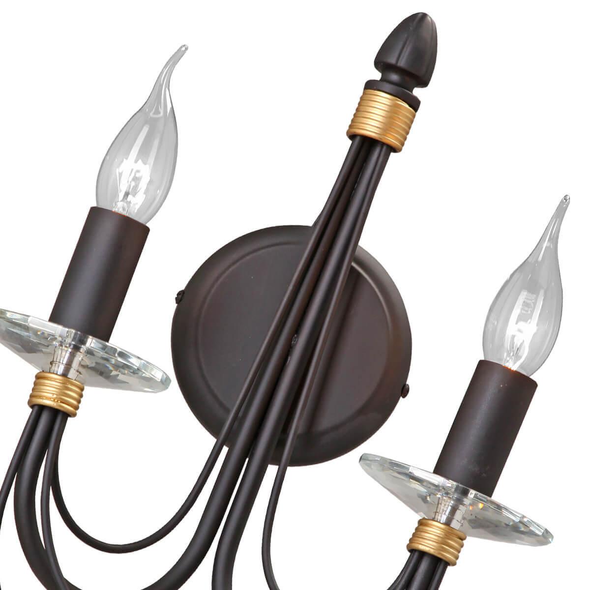 Осветительный прибор сделан в стиле Классический. Подходят лампы цоколя E14 мощностью 120 Вт, количеством 2 ед. Основной цвет модели V1044/2A: Чёрный.