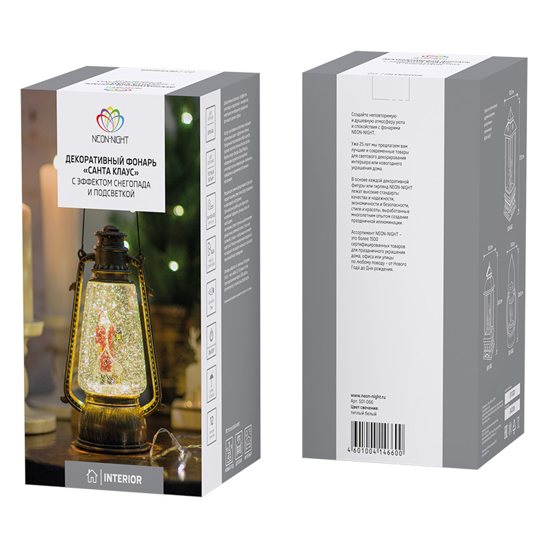 Декоративный фонарь с эффектом снегопада и подсветкой Санта Клаус, теплый белый NEON-NIGHT 501-066 обладает следующими основными характеристиками:, влагозащита IP20.