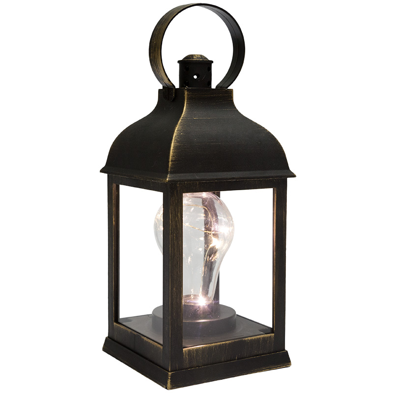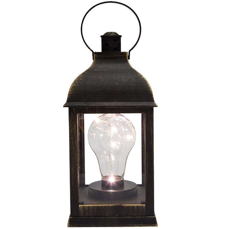 Декоративный фонарь с лампочкой, бронзовый корпус, размер 10.5х10.5х22,5 см, цвет ТЕПЛЫЙ БЕЛЫЙ NEON-NIGHT 513-053
