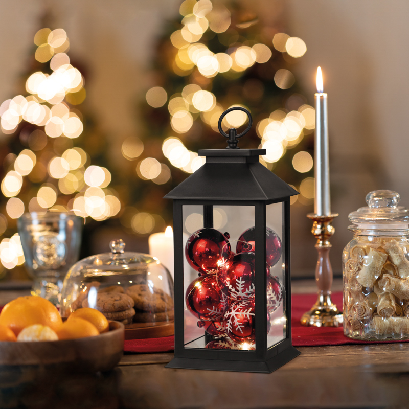 Декоративный фонарь с шариками, черный корпус, размер 14х14х27 см, цвет теплый белый NEON-NIGHT 513-063 обладает следующими основными характеристиками:, влагозащита IP20.