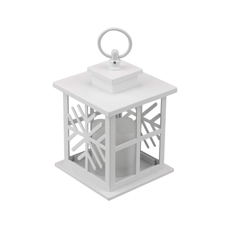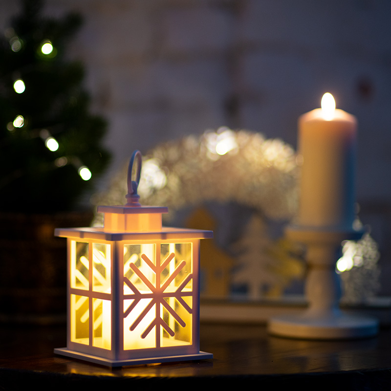 Декоративный фонарь со свечкой, белый корпус со снежинкой, размер 12х12х18 см, цвет теплый белый NEON-NIGHT 513-043