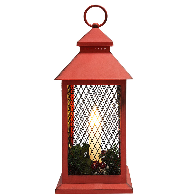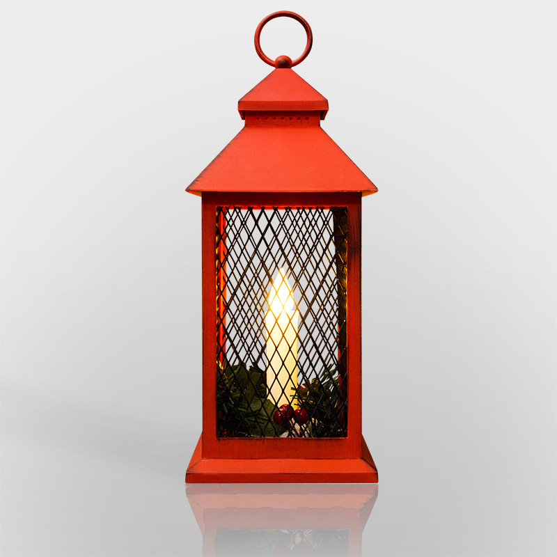 Декоративный фонарь со свечкой, красный корпус, размер 13.5х13.5х30,5 см, цвет ТЕПЛЫЙ БЕЛЫЙ NEON-NIGHT 513-041