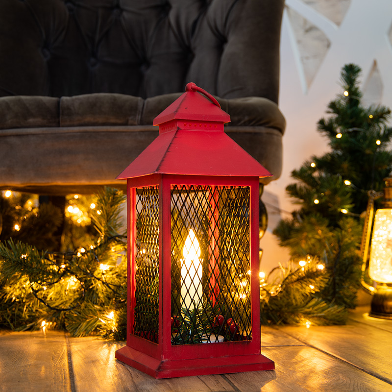 Декоративный фонарь со свечкой, красный корпус, размер 13.5х13.5х30,5 см, цвет ТЕПЛЫЙ БЕЛЫЙ NEON-NIGHT 513-041 соответствует параметрам:, мощность 0,1 Вт Вт, влагозащита IP20.