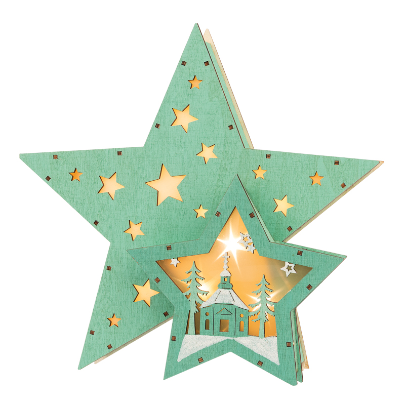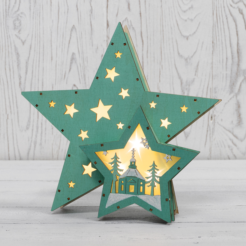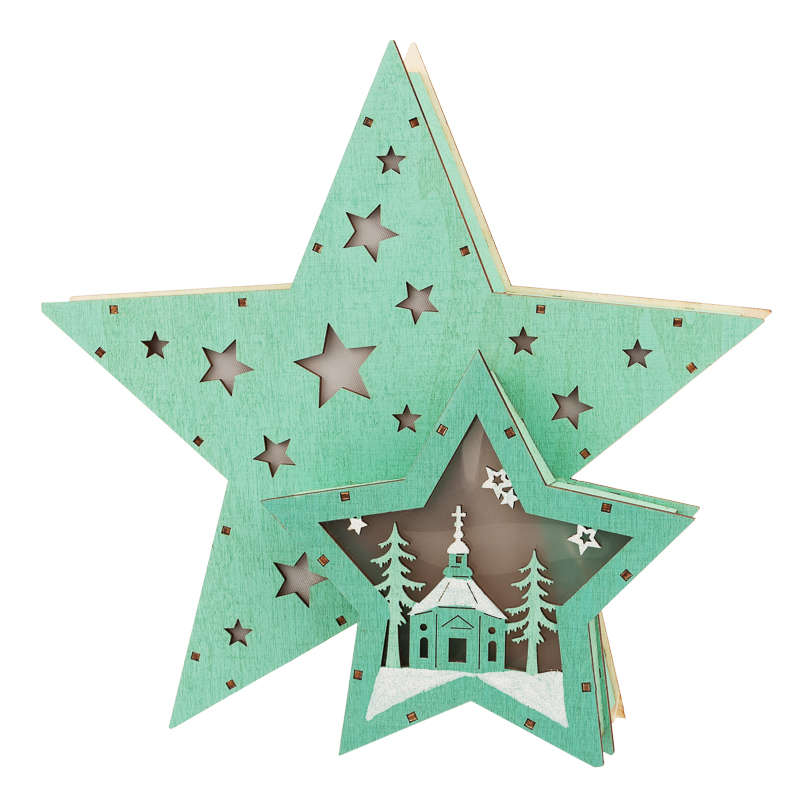 Деревянная фигура с подсветкой Домик Звездочета бирюзовая 26х7х25 см, NEON-NIGHT NEON-NIGHT 504-019
