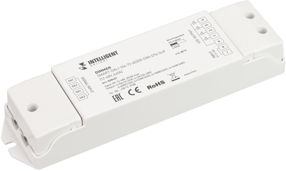 INTELLIGENT ARLIGHT Диммер SMART-DALI-104-72-ADDR-DIM-DT6-SUF (12-48V, 4x5A) (IARL, IP20 Пластик, 5 лет) 028421