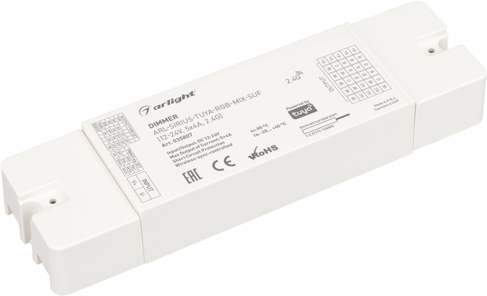 Диммер ARL-SIRIUS-TUYA-RGB-MIX-SUF (12-24V, 5x4A, 2.4G) (Arlight, IP20 Пластик, 3 года) 035807