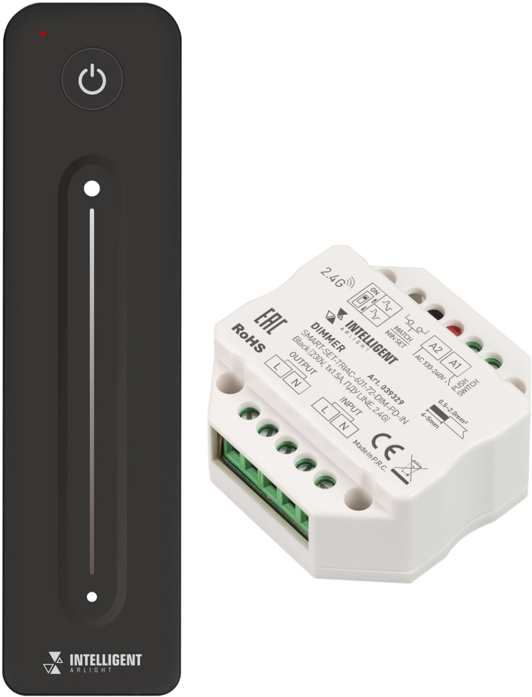 INTELLIGENT ARLIGHT Диммер SMART-SET-TRIAC-601-72-DIM-PD-IN Black (230V, 1x1.5A, ПДУ LINE, 2.4G) (IARL, IP20 Пластик, 5 лет) 039329