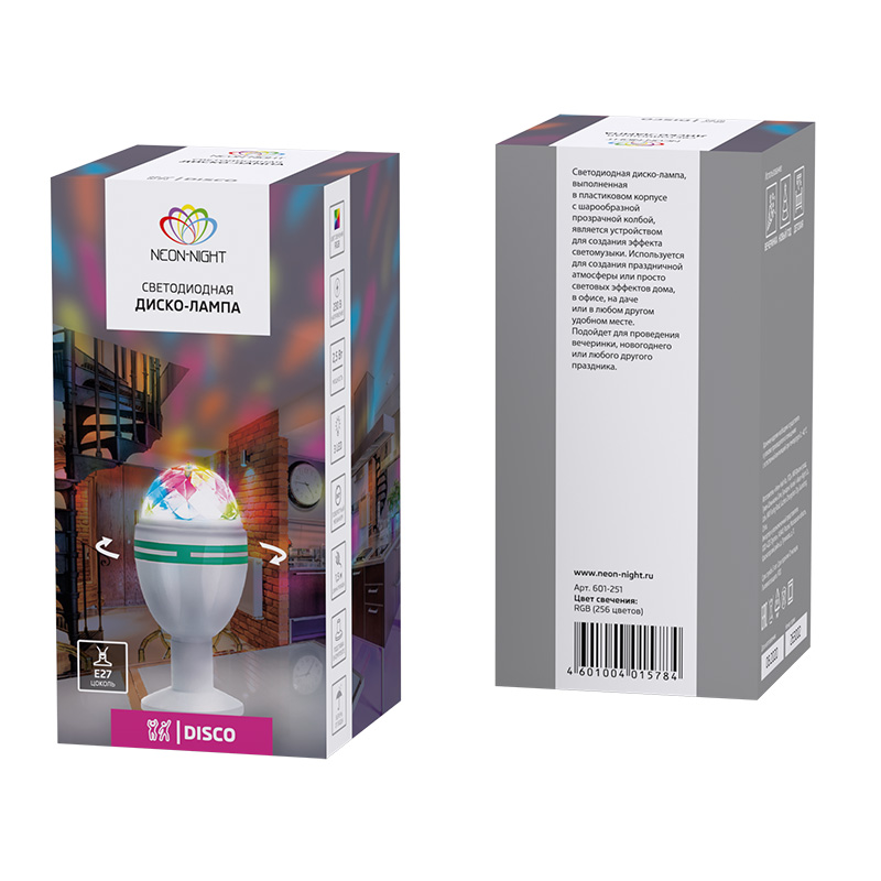 Диско-лампа светодиодная e27, подставка с цоколем e27 в комплекте, 230 В NEON-NIGHT 601-251 имеет основные параметры:, мощность 4,2 Вт Вт, влагозащита IP20.