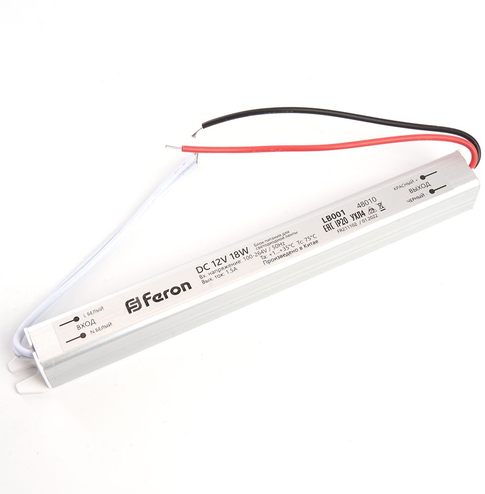 Драйвер 48010 Feron соответствует параметрам:, мощность 18 Вт, напряжение 12 В , влагозащита IP20.